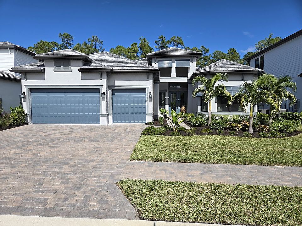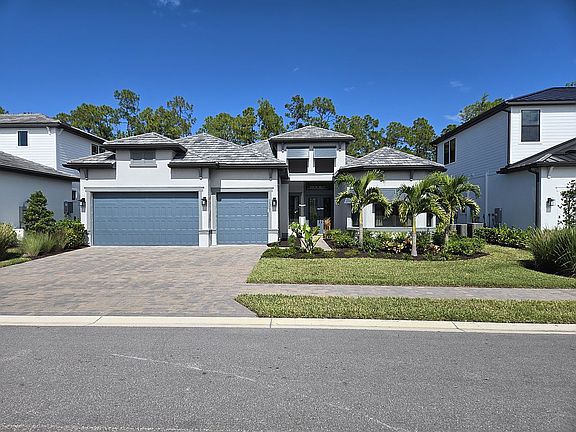 Exquisite North Naples Preserve Retreat! Nestled in one of North Naples’ most sought-after communities, this stunning single-story residence perfectly blends luxury, privacy, and modern comfort. Overlooking a lush private preserve, this 3-bedroom home is designed for both everyday living and effortless entertaining, the open-concept floor plan is accentuated by 12–14' ceilings throughout, abundant natural light, and 10' sliding glass doors that open seamlessly to the lanai. The gourmet kitchen showcases an 11-foot island, a spacious walk-in pantry, a convenient butler’s pantry, and gas cooking — all flowing into the expansive great room and elegant formal dining area and a coffee niche. Offering four full bathrooms, including a dedicated pool bath, this home ensures comfort and convenience for both family and guests. The primary suite is a true sanctuary, featuring bay window with beautiful preserve views, a spa-like bath and an extraordinary 12ftx12ft walk in closet. Each secondary bedroom is generously sized, with finished closets and beautifully appointed baths. Step outside to your private oasis, where a modern saltwater pool and spa overlook the tranquil preserve. The screened lanai boasts a stunning picture-window design, a fully equipped outdoor kitchen, and complete backyard privacy — the perfect setting for entertaining or unwinding in peace. Additional features include ceramic flooring throughout, all impact windows and doors, a whole-home generator, and a gas community for optimal efficiency. Every detail of this exceptional home has been thoughtfully curated to deliver comfort, elegance, and timeless style.