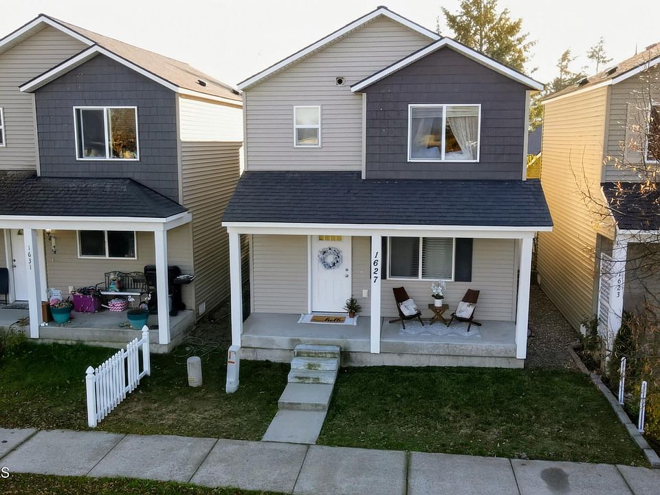 Charming low maintenance living in the heart of Post Falls! Discover the perfect blend of comfort and convenience at this adorable 3 bedroom, 1.5 bath home. You are welcoming by a spacious, covered front porch, ideal for morning coffee or outdoor entertaining. The main level features a bright living room, kitchen, laundry room and half bath. Upstairs you will find 3 bedrooms and a full bath. A fenced backyard along with a detached 2 car garage in the rear of the home with private street. Located just minutes to I-90, schools and shopping, you are close to everything you need while enjoying a quiet neighborhood feel. Don't miss out on this fantastic opportunity!