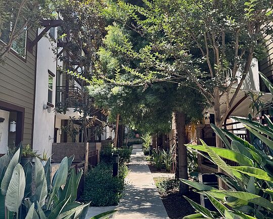 Fabulous 3-level townhouse in trendy Echo Park. Tucked in the back of this stylish Craftsman style complex built in 2012, right between Valerie and Canyon Coffee and just steps away from Elysian Park, and so many wonderful dining and recreational options. Enter the home directly from the lush garden path, or from your private 2 car garage which includes ample storage space. Come upstairs to a bright main living and dining space, featuring wood look flooring, recessed lights and a lovely balcony, which overlooks the garden. The modern kitchen has quartz countertops, stainless steel appliances and plenty of cabinet space. The main level also includes a powder room and laundry area. On the top level you'll find a primary suite with a generous walk-in closet and an elegant bathroom, plus an additional bedroom and full bathroom. Since it is a corner unit, there are windows on two sides and lots of natural light and green views from every room.