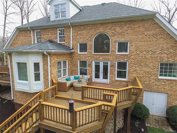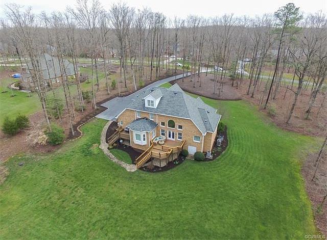 This brick transitional home sits on two country acres near major roads & only a 25 minute commute to downtown Richmond.Present owners have made major improvements to this beautiful property with amenities comparable to new homes.Enter through a 2-story foyer opening to the formal dining rm, 2-story great rm w/wall of windows and French doors to the 2-tiered deck.The chef's kitchen includes a large breakfast nook,keeping rm w/stone wall, a see-thru fireplace and desk area,Cherry cabinets, full granite slab island w/stools & gas cooktop, double wall ovens, travertine backsplash, pantry, buffet area w/built-in wine cooler & door to grilling deck.First floor master features a tray ceiling, custom shelving closet system and newly renovated oasis bath, w/a dual sink quartz vanity, free standing stone tub, marble flooring and huge zero entry shower.There is a vaulted ceiling study next to the master.Upstairs a princess suite bdrm shares a bath with 3rd bdrm &a 4th guest bdrm has on-suite bath. 3rd level is a bonus rm w/half bath. 2-1/2 car garage, walk-in conditioned crawlspace, 20kw generator, security system, invisible pet fence, fenced garden &landscaped setting add to the amenities.