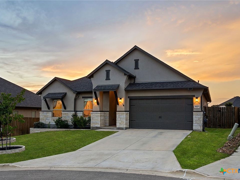 Enjoy the ease of one-story living in this 2,313 sq. ft. Princeton Classic home on a .26-acre lot. With 4 bedrooms and 3 full baths, including a private en suite for guests, there's room for everyone. The owner's retreat is a true escape with tray ceiling, bay windows, and a spa-inspired bath featuring dual vanities, walk-in shower, garden tub, and a generous closet. The heart of the home is the chef's kitchen with quartz counters, gas cooking, and walk-in pantry, opening to an oversized dining area framed by bay windows. Gather in the warm living room with beamed ceilings and fireplace or make use of the versatile flex room with glass doors-perfect for an office, media, or game space. Evenings are made for the oversized covered patio with manual solar shades, overlooking a spacious yard and picture-perfect Texas sunsets. With premier Meyer Ranch amenities, this home blends comfort, style, and community in a way that's hard to beat.