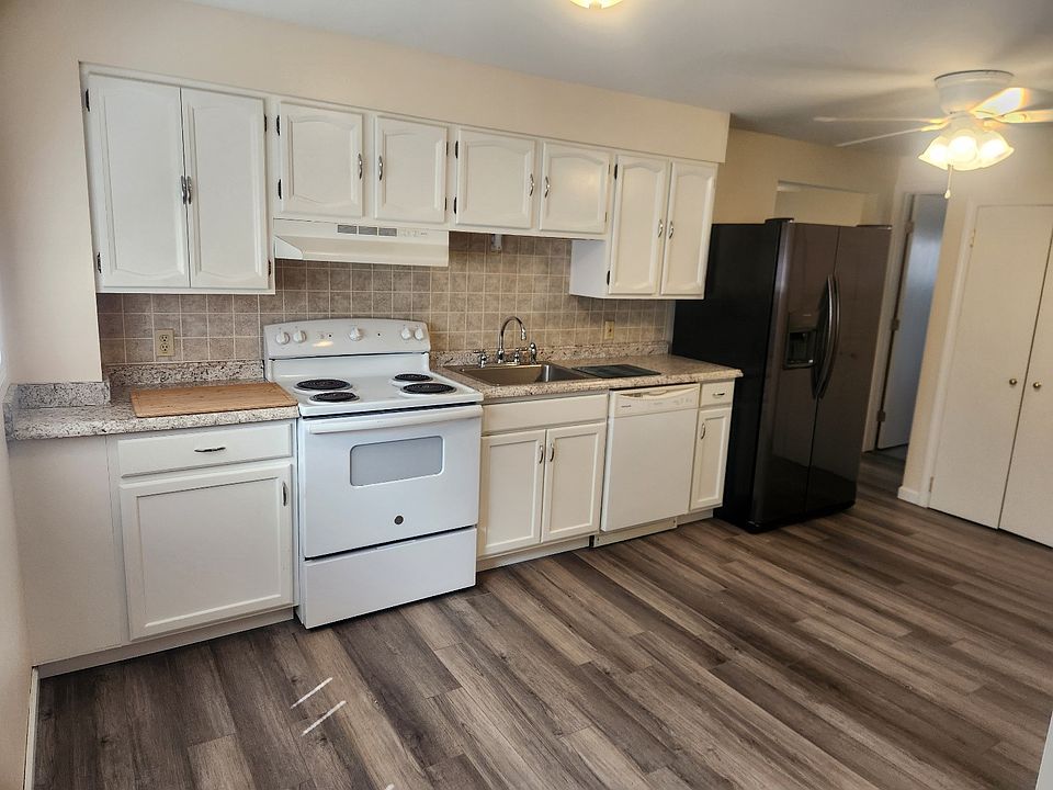 3 bedrooms in Millcreek 1st floor apartment. Freshly painted with new windows with blinds, new vinyl flooring, ceiling fans in all rooms. Large bathroom with new tub & shower and vanity. Large kitchen with electric stove, refrigerator & dishwasher. Shared basement with washer & dryer hookups. nice yard with off street parking.