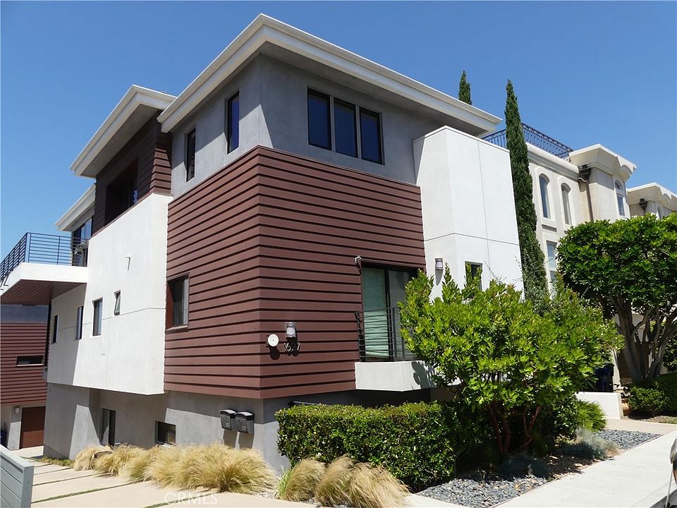 Contemporary ocean view townhome in the Hermosa Hills : 4 spacious bedrooms, 3.5 bathrooms. Master bedroom includes a bonus room/office/nursery - 2 walk in closets, fireplace, spa tub. The top floor boasts wire brushed French Oak hardwood floors expanding throughout the large, open great room. True gourmet kitchen with stainless appliances.  The Lower level has sanded and polished concrete floors, two bedrooms, laundry area, and a patio space. O