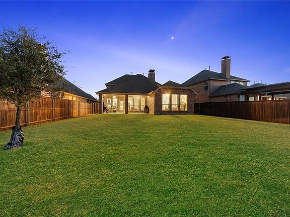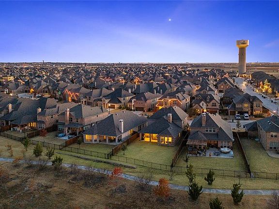 MOVE-IN READY AFFORDABLE HOME ON GREENBELT IN RESORTY STYLE LIGHT FARMS IN PROSPER ISD. Welcoming 2 story entrance, wood flooring thruout downstairs living. Well-designed kitchen features large island, granite counters, stainless appliances, under cabinet lights, designer backsplash and a butler's pantry. Large family room w caststone fireplace opens to breakfast rm and kitchen. Secluded master suite has spa-like bath w dual sinks, oversized shower, and garden tub. Downstairs flex space for study, den or dining. Gamerm, 2 nice sized bedrms and full bath upstairs. Enjoy views of hiking and biking trails from your backyard covered patio. HOA includes front yard care, gym, 4 pools, tennis and more.