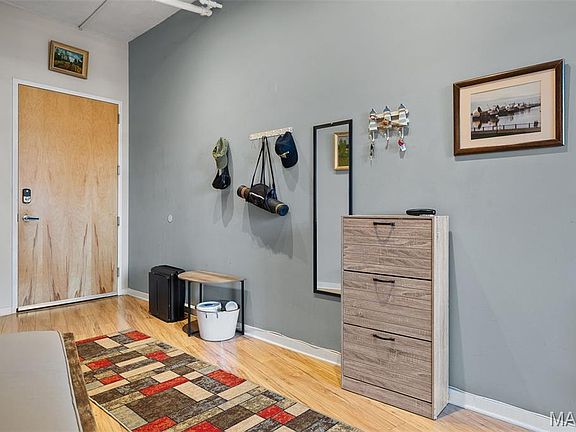 Welcome to downtown living at its best! This stylish loft in the historic Printers Lofts building offers the perfect blend of character and modern comfort. Featuring tall ceilings, expansive windows with fully automated custom coverings, and exposed brick walls, this open-concept space is filled with natural light and urban charm. The kitchen boasts stainless steel appliances, sleek cabinetry, and a large center island—ideal for entertaining or casual dining. The spacious bedroom area provides ample closet space and privacy, while the modern bathroom offers a clean, contemporary design. Enjoy in-unit laundry, secure building entry, and an assigned parking space in the heated garage. Other modern features include occupancy sensing no-touch lighting in the bathroom and laundry, a smart thermostat, and available high-speed gigabit fiber. Located just steps from Washington Avenue’s restaurants, shops, nightlife, and sports venues, this is the perfect opportunity to experience vibrant city living in the heart of St. Louis.