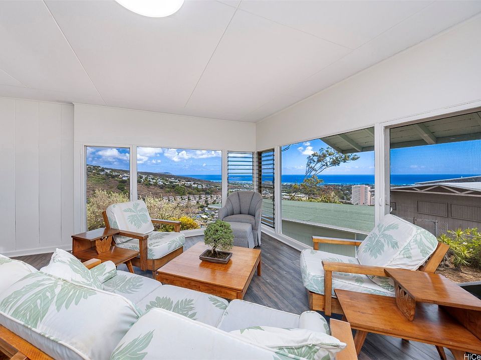 Situated along Wilhelmina Rise, 1627A Paula Drive delivers exceptional panoramic Pacific Ocean views in a charming, easy to maintain 2-bedroom, 1-bath, 912 sq.ft. home. Enter to find a living space that's bathed in natural light and Pacific Ocean views. An open-concept primary living area combines living, kitchen, and dining room spaces, elevating the room with a modern feel. Interior finishes include a newly-updated kitchen with ample counter-top space and cabinetry, newly-painted interior, updating lighting, new appliances, and more. Two bedrooms sit on the cooler side of the residence, with a full bath positioned between the bedrooms and primary living space. A large laundry room sits in the back of the home with additional storage spaces. Situated on 14,858 sq.ft. of land with R-5 zoning, potential opportunity exists for added development. Minutes to Kahala, urban Honolulu, shops, and restaurants, discover convenient island living, stunning Pacific Ocean views, in an unforgettable setting; welcome home to 1627A Paula Drive. Boundary maps approximate. Listing includes enhanced, zoomed-in photos.