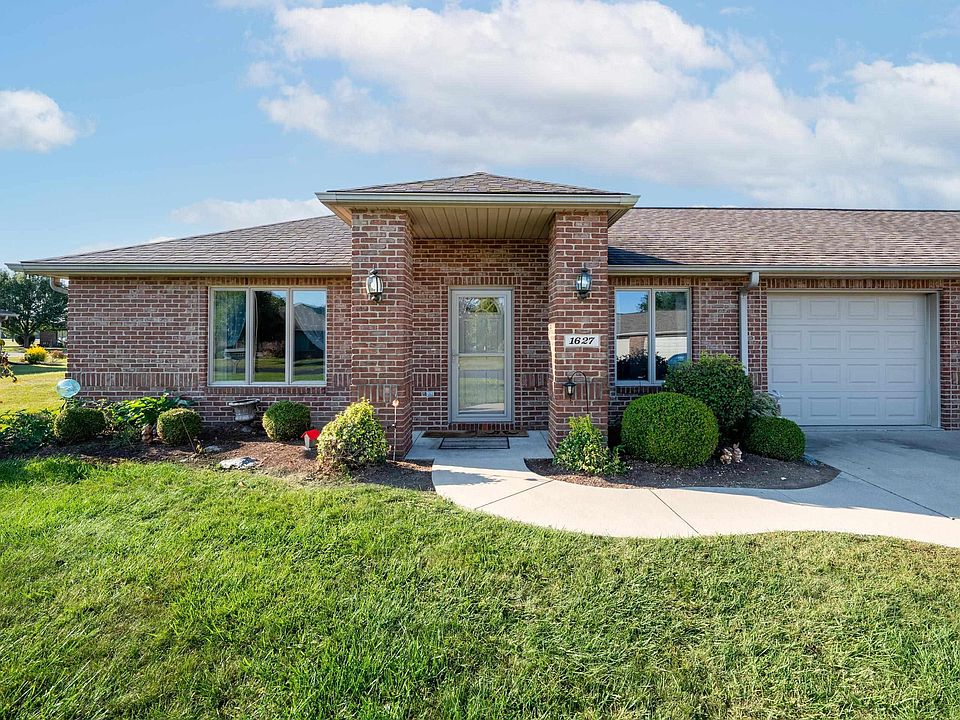 Charming Condo in Heritage Retirement Village! Welcome to this inviting 2-bedroom, 2-bathroom condo offering 1,308 sq. ft. of comfortable living space in the desirable Heritage Retirement Village. The spacious living room features a cozy gas log fireplace, perfect for relaxing evenings. An open floor plan connects the living area to a bright kitchen with solid-surface countertops, creating a warm and functional space. The primary suite boasts a convenient walk-in shower, while the second bedroom includes access to an additional flex room—ideal as a craft room, office, or extra storage. This all-brick condo also includes a one-car garage and is nestled in a quiet, friendly neighborhood. The HOA makes life easy by covering the roof, exterior maintenance, snow removal, and lawn care for just $180 per month. Enjoy being close to trails, parks, and downtown Yorktown, with everything you need just minutes away. Don’t miss this low-maintenance, move-in-ready home in a prime location!