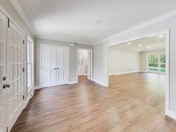 Beautifully Updated Ranch style nestled on 1.42 serene Wooded Acres , offering the perfect blend of modern elegance and natural charm. Step into a spacious foyer featuring two oversized guest closets, setting the tone for the thoughtful design throughout. Enjoy cooking in the brand-new kitchen, complete with custom cabinetry, quartz countertops, high-end appliances, and a generous island perfect for entertaining. The open-concept layout flows seamlessly into the living and dining areas, highlighted by tray ceilings and a stunning marble fireplace with a gas starter. The primary suite boasts a walk-in closet and a luxurious full bathroom. All bedrooms feature large closets and recessed lighting, offering comfort and style. Additional Features A spacious laundry room adds convenience, while the attached two-car garage with an epoxy-coated floor provides durability and a sleek finish. Step outside to a large patio accessed through a new sliding door-ideal for relaxing or hosting gatherings. Finishing Touches Rich wood flooring runs throughout the home, adding warmth and continuity to every room. Comfort living with easy access to Shopping & transportations.