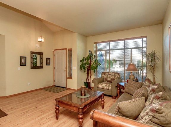 Home w/upgrades in quiet Ridgewood. Vaulted foyer opens to living & adjoining dining room. Kitchen features granite counters, admin center, pantry & opens to family room w/gas FP. Slider leads to deck overlooking fully fenced backyard to enjoy squirrels, hummingbirds, raised garden & dog run. Washer & dryer included in turn-key home. French doors to master w/walkin closet & full bath w/dual vanity. Faux hardwood thru entire house. Updates:ext paint, windows, arch comp roof, fence, furnace & H2o.