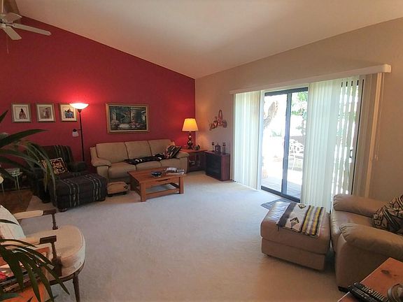 Back patio is partial covered and very private with a patio set. Kitchen has granite counter tops and opens to the dining room.