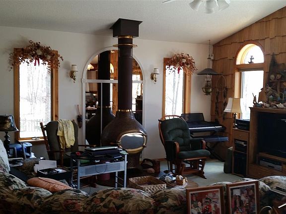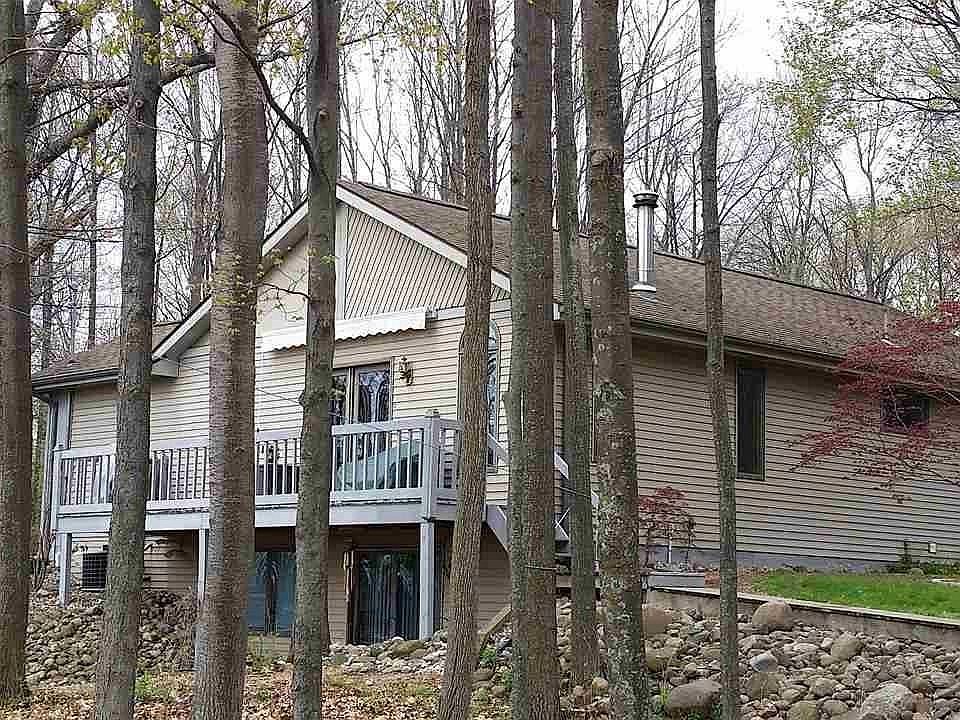 One-Of-a-Kind setting on 5 wooded acres. 3 bedroom home with 2 bedrooms and half bath in lower-level walk-out basement. Master bedroom with private bath. Very energy efficient home. Beautiful deck of dining/living room area overlooking woods and small pond. Cedar walkways lead to pond and screened gazebo area. Perfect for relaxation and entertaining. 26x42 polebarn with additional 12x42 pull-through.Home Warranty included!!