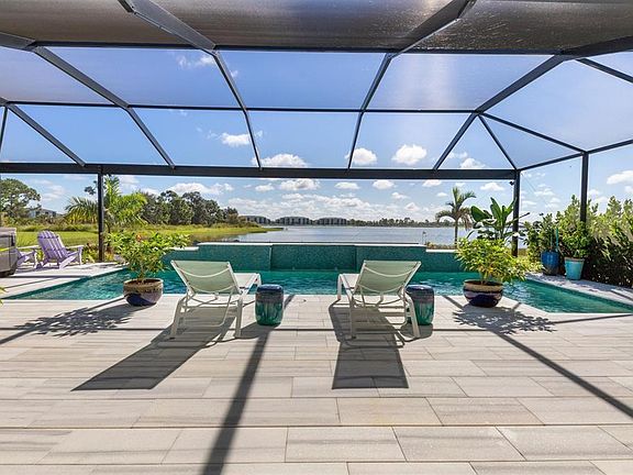 Welcome to lakefront living at its finest on Lake Babcock in Punta Gorda, Florida. This residence is more than a home; it’s a thoughtfully curated retreat where every upgrade has been chosen with comfort, style, and functionality in mind including Quartz Countertops, JennAir Appliances, and ventilated wood shelving. From the moment you arrive, you’ll sense the care and investment that went into creating a one-of-a-kind property that stands apart in this community. Inside, various structural and design selections from the builder set the stage for a modern and luxurious lifestyle. Featuring over $200,000 in additional upgrades after closing such as: Custom woodwork accents the ceilings, walls, windows, and shelving, while a built-in feature wall was designed to hold a screen up to seventy-five inches, making the living space both functional and striking. Laundry cabinets, upper garage storage, and a whole-house water filtration system with UV bring convenience and peace of mind, while thoughtful touches like screened front entry, garden beds, window treatments, Kohler bath accessories, and designer backsplashes elevate the details that make daily life easier and more beautiful. A 400-amp electric service ensures that this home is future-ready, with more than enough power for electric vehicles and even dual 80-amp Level 2 chargers. Premium finishes flow throughout, creating a seamless balance of elegance and everyday livability. Many enhancements transform this house into something extraordinary. The outdoor spaces are a dream for those who love to entertain or simply unwind. A custom 32-by-12 pool sparkles with a PebbleTec finish and shimmering blue glass beads, framed by Carrera marble decking and a forty-foot picture window that opens up sweeping lake views. This heated saltwater pool is fully automated and powered by Hayward equipment, making it as easy to enjoy as it is beautiful. Just steps away, a twelve-by-forty paver patio stretches behind the pool cage, perfect for gatherings or quiet evenings under the stars by the lakefront. You even have the ability to add a dock. Relaxation continues with a 2024 HotSpring Envoy hot tub, one of the finest on the market, offering a spa experience right at home. An outdoor kitchen, ceiling fans, and lush additional landscaping complete the resort-like atmosphere. For peace of mind, a complete CCTV system with PTZ cameras on all four corners, as well as high impact security doors, provides unmatched security. Every inch of this property has been carefully considered, even the over-sized garage features insulated doors and professional grade epoxy flooring, blending high-end upgrades with the kind of comforts that make a house feel like home. This is not simply a home on Lake Babcock—it is a complete lifestyle. From the expansive water views to the private resort-like amenities, it offers the rare chance to move into a property where every upgrade has already been done for you. Don't miss another sunrise by the pool. Schedule your showing today!