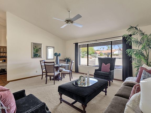 Sparkling pool and spaBeehive fireplaceArizona roomSplit bedroom planFenced backyardPrivate front courtyardFormal dining room