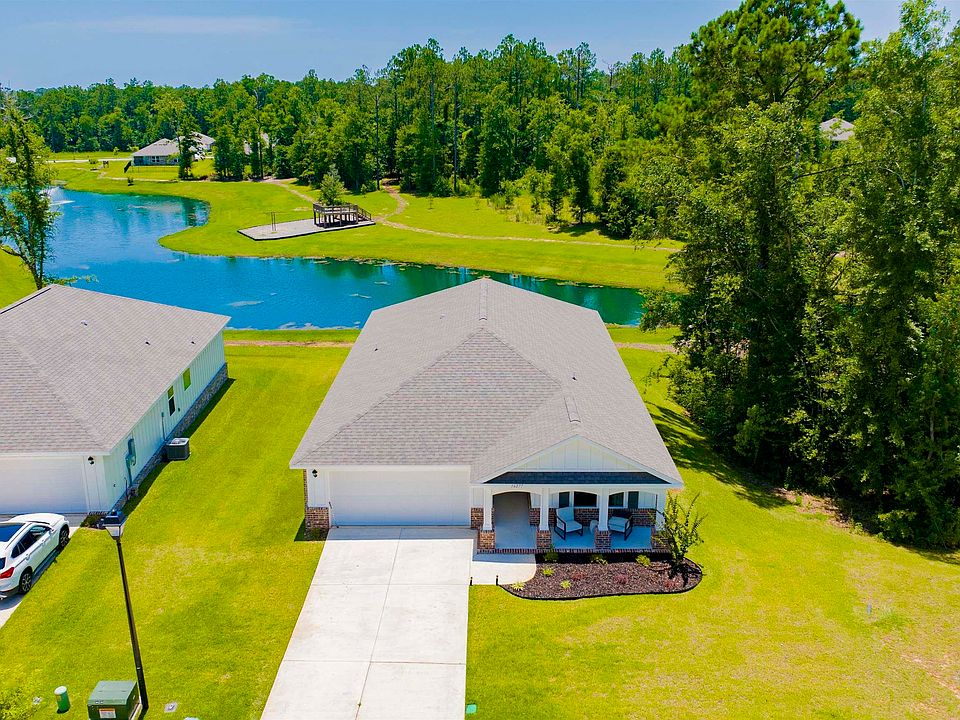 **Open House 11/09 from 2-4pm** With water views from the entire back of the home, this better-than-new home gives the peaceful feeling of living on a lake while being conveniently located in Fairhope! This popular Ryder floorpan is move-in ready with 4 beds/2 baths. The Gold Fortified home is in immaculate condition and features beautiful LVP flooring throughout. The spacious kitchen is open to the living and dining rooms with pristine views of the gorgeous and serene community pond and fountains, which is maintained regularly by the HOA for optimal views. From the back porch, enjoy those same water views along with the sound of birds chirping in the woods to the west. That's right - only neighbors on ONE side of this home for a premier lot position! The home also features a split floor plan, gorgeous white quartz in the kitchen and bathrooms, white cabinets, a walk-in pantry and walk-in his/hers closets in the primary, plus smart home features and blinds throughout. Community amenities feature walking trails, the playground "Treehouse" and gazebo that overlooks the community pond, sidewalks, and more! This home is built to Gold Fortified standards, which offers savings on homeowner's insurance. Buyer to verify all information during due diligence.