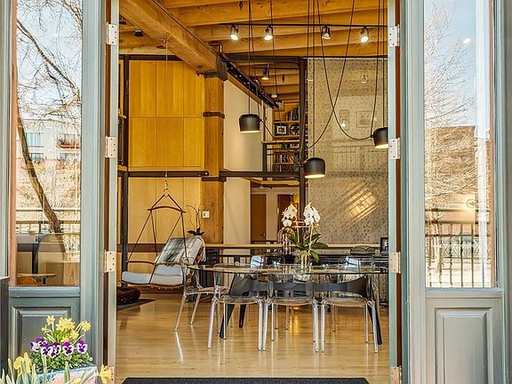 Even among Denver’s gorgeous, historic brick & timber lofts this home is a rarity! Architect Tee Cowperthwaite designed it for himself & 3 sons, creating a combination of soaring ceilings, large windows, and beautiful architectural details fronted by 566 sq ft of ground-floor patio with your own exterior street access. A dramatic three-story atrium is surrounded by striking parallel wood & iron staircases, an all-steel Chef’s kitchen with curved concrete island, upstairs primary suite with 5-piece bath & balcony, and a commanding office. More hard-to find spaces deliver both function and fun: the lower-level has a peaceful guest bedroom & bath, 2,500-bottle wine cellar/tasting room, family/media room, expansive rec room and climbing wall, and the patio’s double doors, brick paving, & turf make indoor-outdoor living a pleasure.