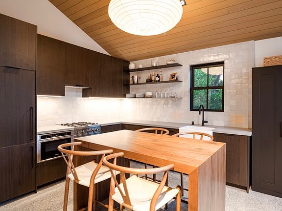 Recently constructed ADU architectural gem on West side. One bedroom/bath, polished concrete flooring with radiant heat, central AC, all solar, minimal utility costs, standard water costs, walk-in shower, Toto toilet (if you know, you know), see through interior/exterior glass/gas fireplace, fully equipped kitchen. , contemporary furnishings. Very private and serene, no street noise. Set behind the main house and offers complete privacy. Available August 1