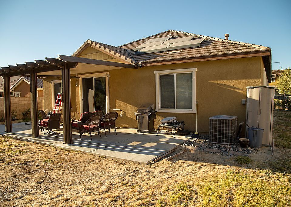 Beautiful single story home in Calico Terrace with solar (lease)! This 2009 home features 9 foot ceilings and ceilings fans in almost every room! The kitchen showcases granite counter tops and plenty of cabinet space, with a center island/breakfast bar, and is open to the dining area. The spacious living room features a tiled gas fireplace. Down the hall, the large master bedroom includes its own private bathroom with dual sinks and separate shower and tub. Three more good sized bedrooms, a full bath, and indoor laundry room completes this home. Outside, the 10,000 sf lot is ready for your personal touch, with a sprinkler system already installed and fruit trees on the hill. Energy Star rated windows & insulation, and energy efficient shades on all windows.