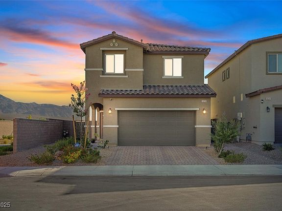 Located in the gated community of The Villages at Tule Springs, this two-story home built in 2024 is situated on a cul-de-sac lot with no rear neighbors. Featuring 4 spacious bedrooms and 2.5 bathrooms, the home offers a serene primary suite that serves as a perfect oasis retreat. The main level flows effortlessly from the spacious living area to a modern kitchen with stainless steel appliances, an island and pantry with ample storage - perfect for entertaining and everyday living. Included is a water softener from H2OToGo. Enjoy mountain views, community walking trails and a private park. With a prime location near other parks, schools, and shopping, this home is the total package! Eligible VA buyers can take advantage of an assumable VA loan at 4.99%. Don’t miss this opportunity! Schedule a showing today!