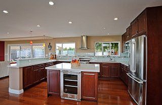 Tastefully remodeled home with a spectacular, unobstructed view of the Bay. 4 bedrooms, 4 baths with 2 master bedroom suites, open kitchen with caesarstone countertop, cherry wood cabinets, stainless steel appliances, cherry finish wood floorings throughout and, double-paned windows. Built in bar in dining area and gas fireplace in living room.