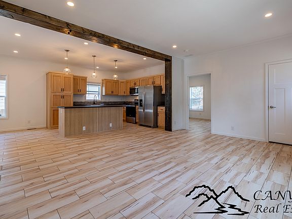 Located in the scenic and historic town of Meeteetse, WY, this nearly new home offers 1,350 square feet of comfortable living with an open floor plan. Built in 2023 and completed in early 2024, the property features three bedrooms, two bathrooms, and modern finishes throughout. The master suite includes a large shower and double vanity, while the kitchen boasts an extra-large pantry and all-new stainless steel electric appliances.