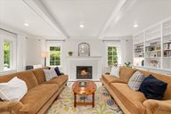Grand fireplaceCaesarstone quartz countertopsReimagined kitchenFresh landscaping with sprinklersOversized two-car garageBeamed ceilingsHickory hardwood floors