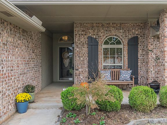 Welcome home to the wonderful Blue Stem Ridge community! The front porch and entry invite you into the open floorplan, complete with hardwood floors, stained wood crown moulding, gas fireplace with beautiful mantle and storage throughout! The big eat-in kitchen has a breakfast bar, pantry, gas stove and lots of natural light. The master is a suite with ceiling fan, His&Hers walk-in closets, jetted tub and double sinks. On the other side are two nicely sized bedrooms AND a dedicated office with decorative doors and built-ins. The laundry room off the kitchen has granite countertops and built-ins for even more storage. The backyard has an open patio, shed on a pad, capped gas line for a future grill or kitchen and privacy fencing all around. Other great features of this home are the tornado shelter, new HWT and you're within walking distance to the elementary and high schools as well as Arbor Gardens park. Schedule your showing today!