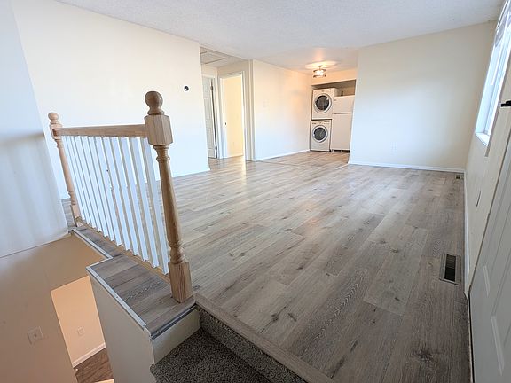 Spacious 4 bedroom, 2 full bath, 2 story unit. Two large living rooms, smart thermostat, fiber internet hookups (but internet not included in rent), keyless entry. Very well insulated to reduce heating and cooling costs. All appliances included including the stacked washer and dryer and extra refrigerator. No other furnishings. Luxury vinyl plank flooring throughout, two lower bedrooms are carpeted. Off-street paved parking next to the house accessed by the alley.