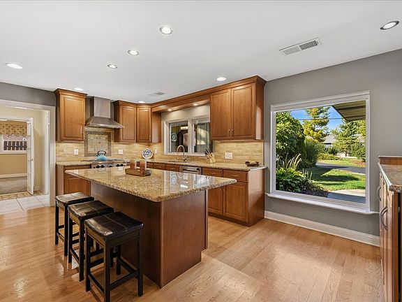 Nestled within one of Vernon Hills' best-kept secrets, Woodbine Circle. This remarkable ranch sits on over an acre of land and blends timeless style with modern convenience. With countless updates and located within the highly rated Stevenson High School and District 103 boundaries, this home is an exceptional find. From the moment you arrive, the property makes a lasting impression. A circular driveway winds gracefully to the home, enhanced by paver brick accents, a brand-new roof and professional landscaping. As you step into the foyer, you're greeted by an awe-inspiring living space where an entire wall of sliding glass doors invites the outdoors in. Sunlight pours through the glass, filling the room with a warm, golden glow while framing picturesque views of the expansive backyard, creating a seamless connection between indoor comfort and outdoor beauty. The dining room adds warmth and character with its cozy wood-burning fireplace. An incredible chef's kitchen is designed for both style and function, featuring 42-inch cabinetry, gleaming granite countertops, a large island, stainless steel appliances, and a double oven. Whether preparing daily meals or hosting, it is a space that inspires. The primary suite feels like a true retreat. A tray ceiling and spacious walk-in closet set the tone, while the spa-like bathroom elevates everyday living with dual vanities, a soaking tub, heated floors, and a luxurious walk-in steam shower. A second ensuite bedroom offers privacy and comfort for guests, while two additional bedrooms share another full bathroom. For those working from home, the private office provides a perfect setting with French doors, recessed lighting and new carpeting. A versatile flex room adds even more possibilities-whether used as a game room, recreation space, or even a fifth bedroom. Throughout the home, thoughtful details such as solid core doors, updated trim and crown molding and Pella sliding doors and windows reflect quality craftsmanship. Practicality is seamlessly paired with peace of mind thanks to a whole-house 22KW Generac generator and an in-ground front yard sprinkler system. Outside, the backyard provides an entertainer's dream and/or a private retreat, offering endless opportunities to gather, play, or simply enjoy the beauty of nature. Recent updates include a new roof and gutters (2025), Frigidaire Pro refrigerator (2025), Bosch dishwasher (2025), A/C condenser (2023), two hot water heaters (2021), and a furnace with Aprilaire humidifier & UV light cleaner (2020). Close to endless shopping, dining, entertainment and so much more! Blending thoughtful updates, modern comfort, and a setting that balances privacy with convenience, this beautifully maintained ranch is a rare opportunity in an unbeatable Vernon Hills location!