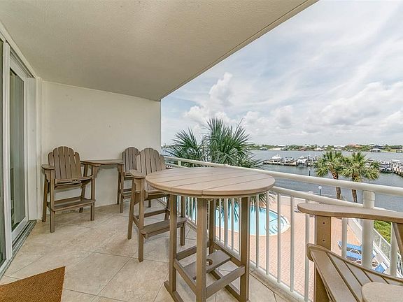 Enjoy the BEST of BOTH the BEACH and RIVER! This PREMIUM unit at Seaspray Riverside offers AMAZING VIEWS of the RIVER and DEEDED BEACH ACCESS directly across the street. Perfect for all the BOATERS and with a TOP OF THE LINE MARINA featuring BOAT PARKING, AMPLE SLIPS, and RAMP! You can boat away and bring your fresh catch and throw it on the GRILL in the NEW OUTDOOR KITCHEN and GRILLING AREA. LOUNGE AWAY the day at the FABULOUS GULF FRONT that is PRIVATE and not overcrowded. Relax and enjoy a swim at one of the three pools. This UNIT is PERFECT NESTLED on the THIRD FLOOR offering DIRECT WATER VIEWS. DESIGNER and TURN KEY for you and ready to just bring your flip flops. WHIP UP DINNER in the kitchen with solid wood cabinets, TOP OF THE LINE APPLIANCES, and nice breakfast bar. PLENTY of ROOM TO SOAK IN THE VIEWS in the extra large living area with SOLID WINDOWS to enjoy the boats going by and fabulous sunsets. Unit boast TWO MASTER BATHS with KING BEDS and dedicated bathrooms. STORAGE IS AMPLE with interior storage, and outside storage unit to hold your fishing and beach gear. Unit is SOLD FULLY FURNISHED with TROPICAL TOUCHES that will please and refresh the SOUL. This would be a perfect full time home or vacation rental. Dues are $631 per month, Electric Average is $125 per month, and Property Taxes are $4605 Annual. Sally repairs to Seaspray are in full swing. All pools and marina are OPEN! Seller will participate and/or escrow for possible assessment. HURRY and TOUR THIS UNIT TODAY. ONLY RIVERSIDE UNIT ON THE MARKET.
