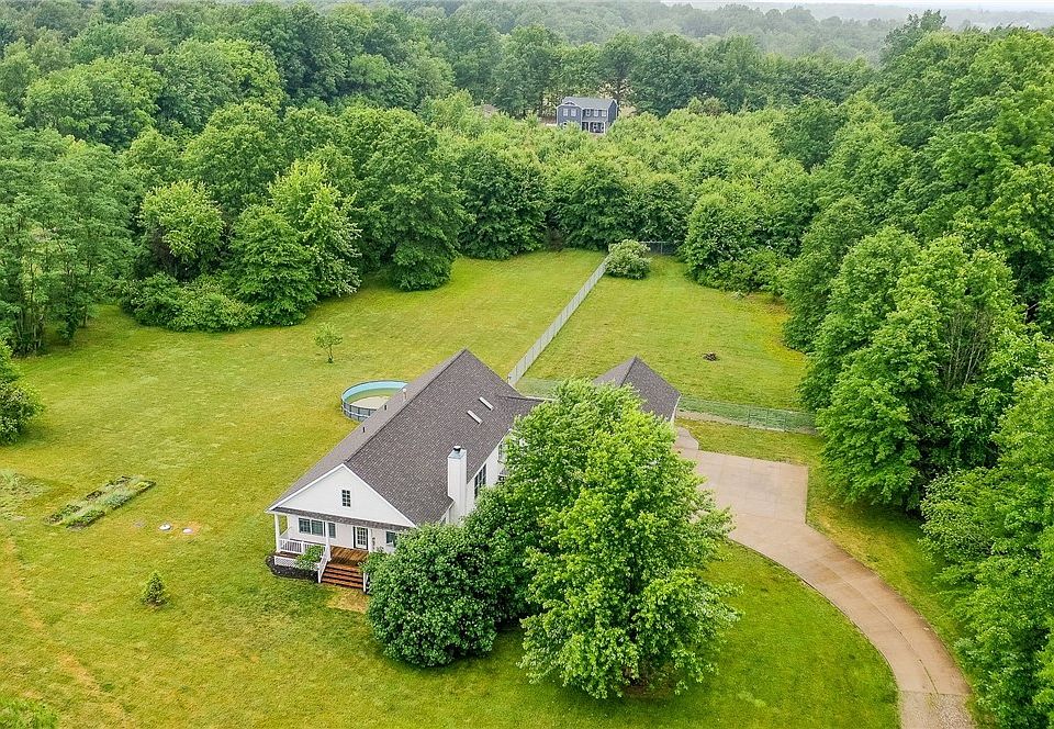 This three bedroom three bath, first floor living, 5 + acres have endless possibilities. A front and backporch out looking your beautiful property. Living room with a wood-burning fireplace. A nice size dining room with building shelves Great big kitchen with an island to entertain. Breezeway in between the garage and the kitchen to sit and enjoy! Three car garage with high ceilings, drain and electric. Head to the basement with lots of options!