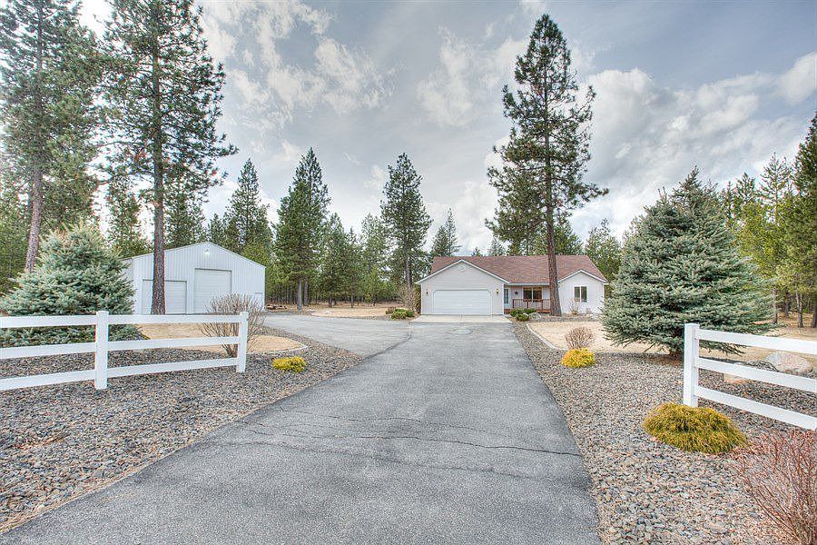 A SPECTACULAR 5 ACRE SETTING W/40X50 SHOP! A tastefully updated 3br/2ba rancher w/approx 1610 sq/ft. The floor plan is open w/vaulted ceilings, high-end hand-scraped laminate, tile and carpeted floors with newer interior paint. The kitchen has been remodeled with slab granite counters w/under mounted sink and stainless steel appliances including a gas range. There's a gas fireplace, A/C, huge rear deck and a bay window. The grounds are perfect... there's paved access, concrete borders, sprinkler system, blacktop circular driveway and more! The shop is a dream...concrete floors, 14' door, power and loft. A MUST SEE!!