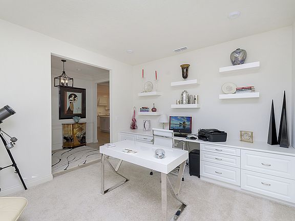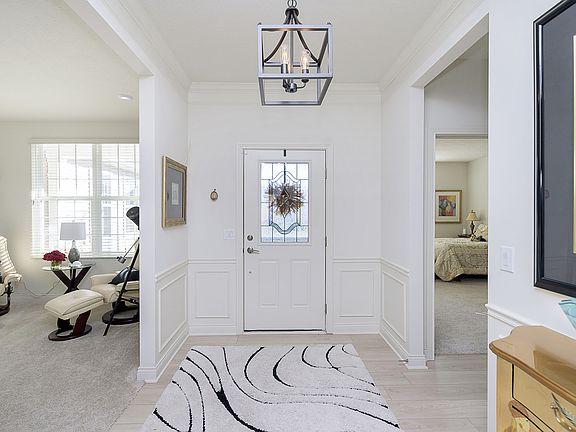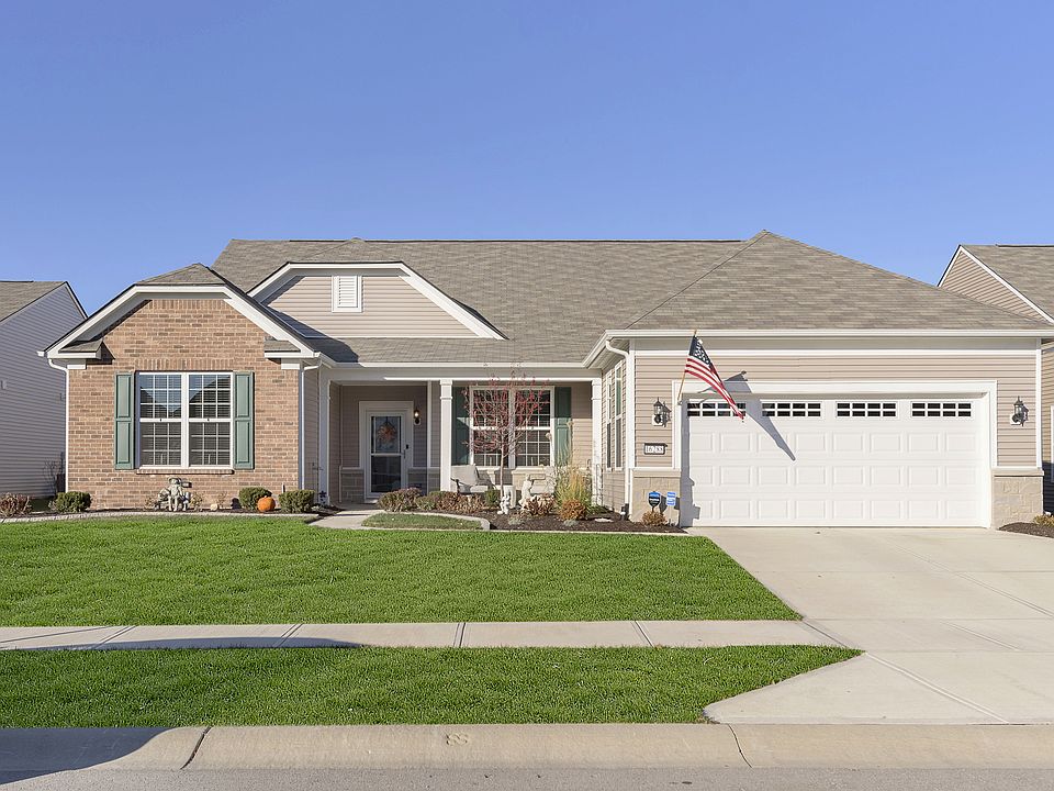 Welcome to your dream home in the heart of an active 55+Community. This 3-bedroom gem, part of the Reflection Model Series, welcomes you with its open concept living. Step inside to discover a home adorned with stunning upgrades at every turn including LVP flooring. The Great Room, office and upstairs living space boast custom cabinets as well as a built-in desk in the office. The kitchen makes entertaining a breeze with a sprawling 10 ft. island, double ovens, stainless steel appliances, quartz counters, walk-in pantry, and above and below cabinet lighting. Primary ensuite includes dual vanities and walk-in, tiled, oversized shower. Bonus upper-level features 3rd bedroom, full bath and spacious living area. The main floor guest bedroom has an ensuite. Laundry on main floor includes boot bench, drying rack, sink and cabinets. Closet Concepts have enhanced every closet, ensuring storage is both stylish and practical. Rare Feature is the hard to find 3 car finished garage with epoxy floors. Step outside to your screened porch also with epoxy floors and bask in the serenity of your premium lot overlooking a tranquil pond with two fountains as well as a walking path. Plenty to do in this community from indoor swimming pool, tennis and pickle ball, exercise room and exercise classes to all kinds of clubs to join.