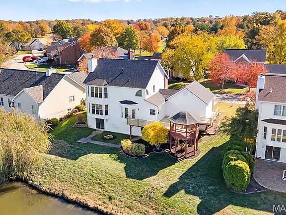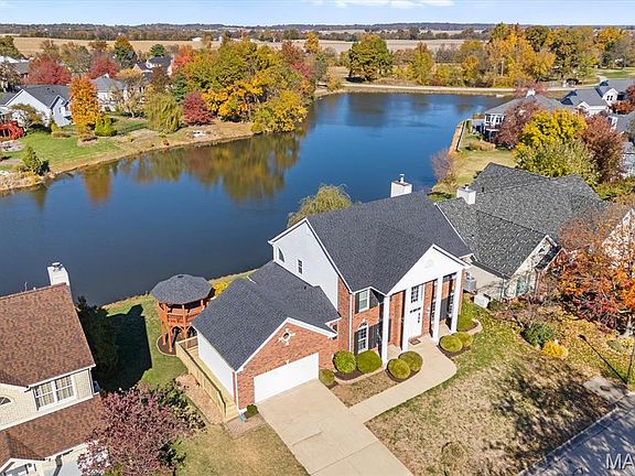 Nestled on a premier waterfront lot in the esteemed Orchards Subdivision and within the highly rated Mascoutah School Dist. this stately 2-story home offers timeless curb appeal, serene water views and NEW ROOF! Featuring 4 beds, 4 baths, 2 car garage and finished walkout basement, this meticulously maintained home combines comfort, style, and VALUE! With 9ft ceilings throughout main level, the welcoming 2 story entry is flanked by a formal dining room and a formal sitting area, leading to a spacious living room with a gas fireplace and bay windows overlooking the serene water views. The well lit eat-in kitchen features multiple pantries, stationary desk, center island and direct access to the NEW DECK—perfect for entertaining or peaceful evenings overlooking the water! A powder room and dedicated laundry room complete the main level. Upstairs, the primary suite impresses with French door entry, bay windows to enjoy the view, and a spa-inspired en-suite w/ soaking tub, separate shower, dual vanities and oversized walk-in closet. Two additional guest bedrooms and a full guest bath complete the upper level.