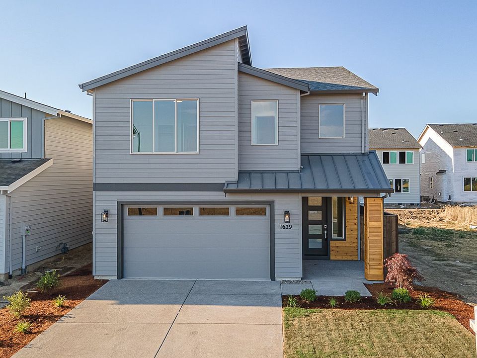 Ask about Fall into Savings Incentive! Contemporary plan w/painted mission style cabinetry, slab quartz countertops kitchen/bathrooms. WP stainless steel kitchen appliances inc 5-burner gas cooktop, wall oven, micro, dishwasher. Gas fireplace with box beam wood mantel. Urban loft mixed finish lighting pkg. Primary suite includes 5x4 all tile shower, dual sink vanity and walk-in closet. Front/rear landscaping w/sprinkler system on timer. Tankless water heater, central A/C. Earth Advantage Cert.