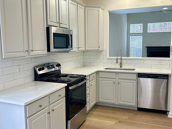 Move in ready 3 bed 2.5 bath townhouse with the primary suite located on the main level! The main level features a dining area, remodeled kitchen with stainless appliances and a tile backsplash, large living room with vaulted ceilings, a half bath and the primary suite (complete with shower, garden tub and a walk in closet). The upper level has two large bedrooms (one with a walk in closet), a full shared bath and a huge flex space/bonus area that overlooks the main level living room. Recent updates include but not limited to new flooring, fresh paint, new fixtures, new granite counter tops and more!
