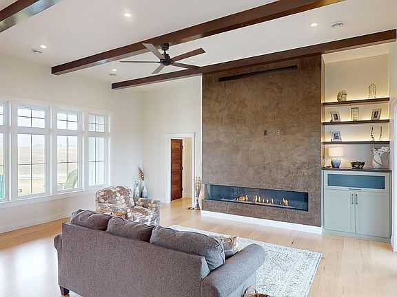 Completed NEW CONSTRUCTION. Welcome to this majestic 2-story home, a true masterpiece nestled on a sprawling 2.44-acre lot. As you enter, be greeted by the elegance of hardwood floors that extend throughout the main floor, perfectly complemented by the luxury of in-floor hydronic heating. The centerpiece of the living room is a stunning 9-foot gas fireplace, with exquisite European plaster & custom mantle, all beneath soaring 12-foot ceilings that enhance the grandeur of the space. The main floor boasts a spacious primary suite, offering ultimate convenience and privacy. Ascend to the upper level to discover four large bedrooms and a charming sitting area, ideal for relaxation. This home seamlessly blends sophistication with comfort, providing ample space for both entertaining and everyday living. With its impeccable design and premium features, this residence promises an unparalleled lifestyle in a serene, expansive setting. Experience the perfect balance of luxury and tranquility in this remarkable home.