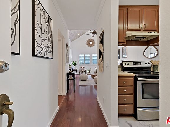 Welcome home to this bright and airy penthouse condo. Lovingly restored and renovated, innovative reimagining has brought this 2 bed/2 bath Long Beach gem to the forefront of city living. Enjoy the vaulted ceilings in your spacious living room, as it welcomes you to the home's comforting and light-filled indoor space. Cooking will be a treat in your kitchen, which features stainless steel appliances, an oversized sink, and dishwasher. The balcony, which extends from the living room to the primary suite, is well-suited for al fresco dining, with sweeping views from downtown Long Beach to the Palos Verdes Peninsula. Other features include a primary ensuite bathroom, in-unit washer and dryer, crown molding throughout the unit, and gated parking (2 separate non-tandem spots). This home, designed for chic penthouse city living, is a welcome sanctuary.