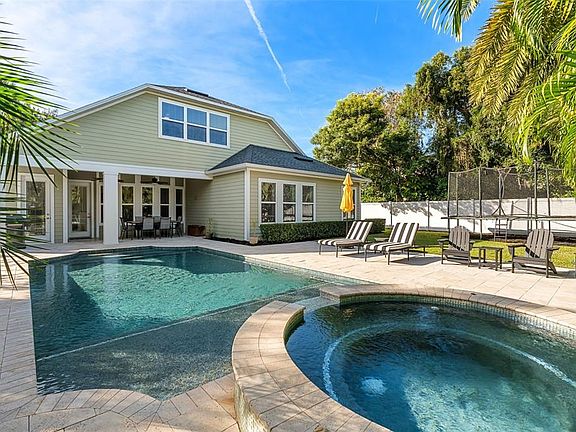 Welcome to an exceptional residence in the heart of Delaney Park, one of Orlando’s most beloved and timeless neighborhoods, celebrated for its tree-lined streets, historic character, walkable lifestyle, and close proximity to lakes, parks, playgrounds, downtown venues, and the city’s best-rated schools. Set on a beautifully manicured lot with craftsman-inspired architecture, shaker shingles, paneled front columns, and a pavered driveway with extra parking, this David Weekley home blends classic curb appeal with thoughtful modern and energy efficient updates. Inside, a wide foyer sets the tone for the home’s generous scale, offering space for drop zones or accent furniture. Handscraped engineered hardwood floors flow throughout the main living areas, complemented by crown molding, decorative columns, and expansive windows that frame panoramic views of the private backyard and saltwater pool. The nearly 30-foot-wide living room is a true centerpiece that's bright, flexible, and designed for gatherings of any size, all anchored by a designer ceiling fan and surrounded by natural light. The kitchen is equally impressive, featuring a large cooking island with gas cooktop, granite countertops, a French door refrigerator (2025), built-in convection oven and microwave, subway tile backsplash, brushed nickel hardware, breakfast bar seating, and a spacious closet pantry. A charming dining space with a buffet overlooks the backyard, while a dedicated pool and visitor powder room adds convenience. A separate first-floor flex room offers endless versatility as a playroom, library, homeschool space, salon, or home office, while flanked by two guest bedrooms, each with its own full bath and built-in closets. At the opposite wing, the spacious primary suite delivers comfort and style with high ceilings, designer wallpaper, recessed lighting, three large windows overlooking the pool, and an ensuite bath featuring dual vanities, a walk-in shower, garden tub, wall-mounted mirror, modern chrome fixtures, and a generous walk-in closet. Upstairs, a huge bonus room functions as a fifth bedroom, home theatre, gym, game room, or guest suite, complete with its own full bath. The indoor laundry room includes built-in shelving for additional storage. Step outside to your personal retreat. A stunning pavered saltwater pool and spa (2015), with new pump (2025), sits among lush tropical landscaping and a fully fenced yard that ensures privacy. Travertine decking, multiple seating areas, a covered porch with outdoor ceiling fans, and a wide expanse of green lawn make this space ideal for year-round entertaining. Residents of Delaney Park enjoy walkability to its iconic playground, tennis courts, baseball fields, Lake Davis, Lake Cherokee, and a short bike ride to Thornton Park, SODO, Dr. Phillips Center, and Orlando Health. Zoned for highly regarded Blankner K–8 and Boone High School, this is truly a lifestyle home in one of Orlando’s most treasured communities.