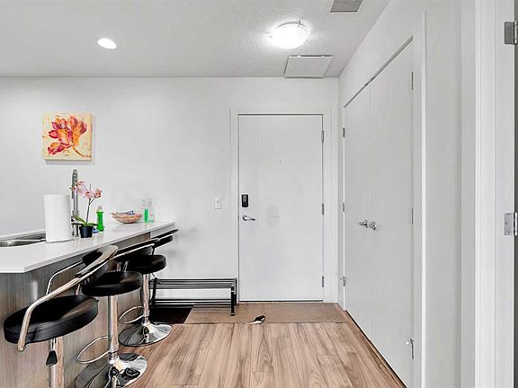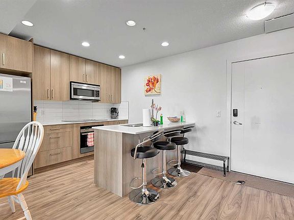 Discover exceptional comfort and modern style in this beautifully appointed two-bedroom plus den condominium, perfectly designed for contemporary living. Built with solid concrete and steel construction, this residence offers outstanding durability, sound insulation, and long-term value. The open-concept layout is bright and inviting, featuring wide-plank flooring, polished quartz countertops, and premium Fisher & Paykel appliances, including an induction cooktop, convection microwave, and built-in dishwasher. The thoughtful design extends throughout with in-suite laundry, a titled underground parking stall, and geothermal heating and cooling for year-round efficiency. The primary bedroom includes a spacious walk-in closet and a private ensuite, while the additional bedroom and den provide flexibility for guests or a home office. Ideally situated just steps from the C-Train, close to local shops, restaurants, Westhills, and a short commute to downtown, this home offers both convenience and lifestyle. Whether you’re a professional, downsizer, or investor, this residence combines quality construction, modern finishes, and an unbeatable location for effortless urban living