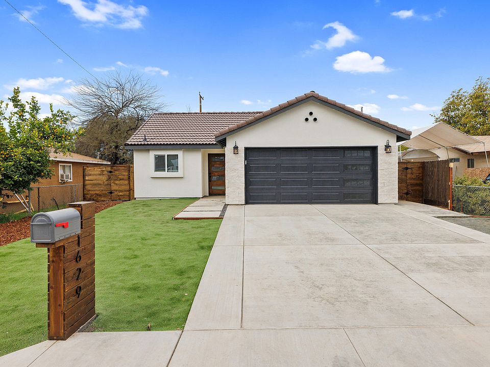 Owned Solar! FHA ready! There is no other custom New Construction on the market today in Visalia like this Neo Mediterranean Home. This breathtaking home enjoys every conceivable amenity and contemporary convenience and is wonderfully suited for entertaining. The property was carefully placed on this prime 6600+/- parcel. The property won't disappoint you. A perfect melding of old-world flair artfully blends into a contemporary lifestyle showcasing modern materials. Masterfully built, full of light, with uninterrupted indoor and outdoor living. Designer hard surface countertops and stainless steel appliances in the Kitchen, sleek cabinetry, and beautiful bathrooms all enhance the contemporary ambiance. Formal living space complemented by an open family room with much room to entertain. All of the main rooms open off one central hallway, with a master suite at one end. Featuring a 2 car garage, Low maintenance landscape with artificial grass in the front. Close to everything! Walk Score of 75! A straight drive into the Vibrant Visalia Downtown.
