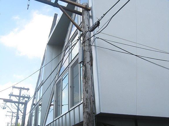 A 4-unit rental loft facility which features 1833 sq.ft. two-story live / work / office spaces. each unit has enclosed rooms that can be used for shared or private offices or a conference room. The building expands on the design philosophy and amenities found at our other previously-built facilities. The first floor is raised 11' above grade allowing for a ground level entry garden and covered parking. The elevated units feature curved, angular and sloping partitions, a 20' tall window wall and 21' ceilings with exposed steel structure. The super-insulated building employs passive solar design and various other green building technologies and materials. Additional amenities include: two off-street parking spaces per unit, full kitchens, two full baths per unit, individual HVAC systems, in-unit laundry and 100 amp / 32 circuit electric panels. Spaces may be combined for greater flexibility.