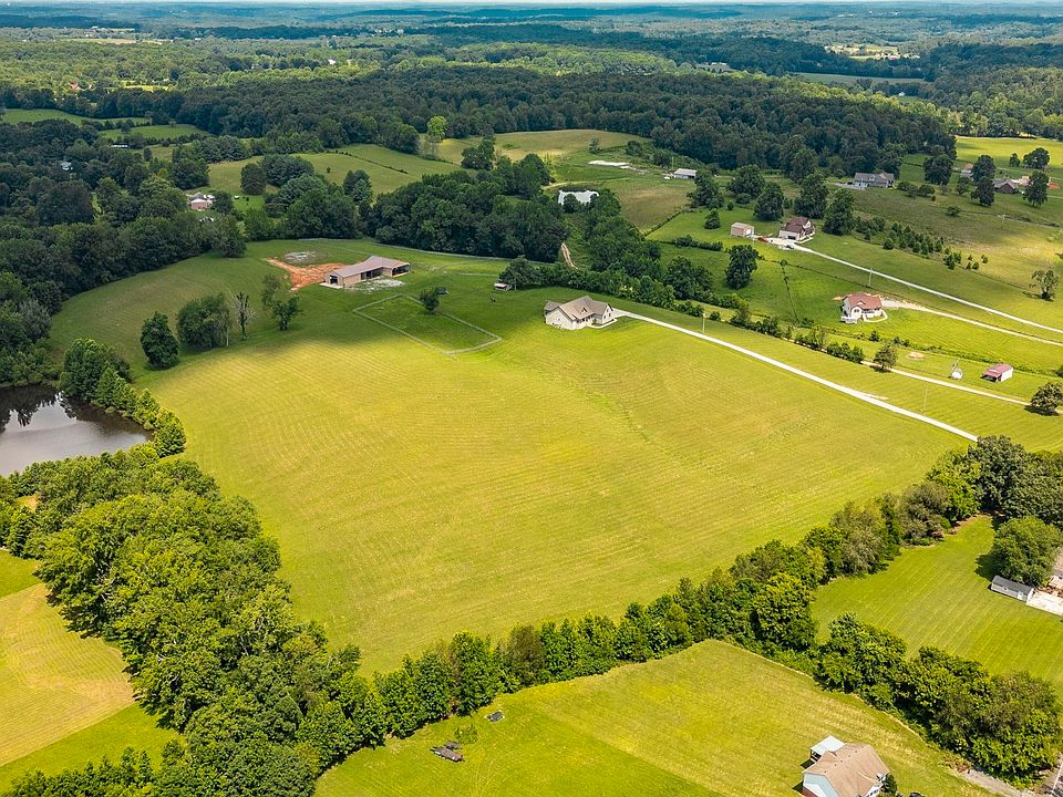 Sellers offering $10,000 in flex cash as well as $10,000 lender credit & free appraisal from preferred lender!! Welcome to your dream countryside estate! Perched atop a hill with breathtaking panoramic views of the beautiful countryside, this custom-built 3,868 sq ft home offers the perfect blend of luxury and functionality on 27 acres! Step inside to find 4 spacious bedrooms, each featuring large walk-in closets, and 3.5 baths including a huge primary suite with a large walk-in shower. The chef’s kitchen is a showstopper with endless cabinet space, gas stove, double ovens, perfect for entertaining and daily life. Open concept space flowing from the kitchen to the dining room or to the coffee/wet bar to the living room. Relax in the massive living room with a gas fireplace or work from home in your dedicated home office. This property is a true haven for equestrians and hobby farmers alike with a professionally installed 6-stall horse barn complete with a tack room, three separate fenced pasture areas, and a chicken coop with additional storage. Two large open-air metal barns offer endless possibilities for a workshop, equipment storage, or future conversions as well as part ownership of a large pond. The estate consists of three parcels, each with a 4-bedroom perk site, opening doors to build additional residences or simply enjoy the privacy and investment potential of your land. Don’t miss this opportunity to own a one-of-a-kind estate with space, functionality, and stunning views – your peaceful country lifestyle awaits.