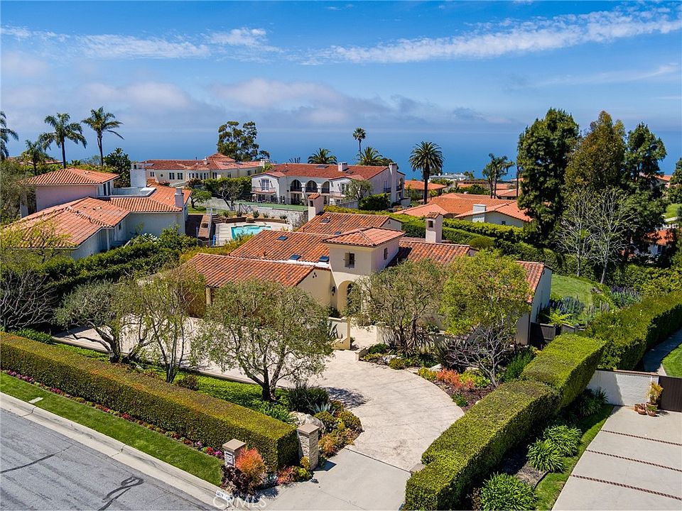 Fabulous Tuscan style split level Monte Malaga estate is waiting for you! Enter your beautiful home through a private courtyard (perfect place to have your morning coffee). Grand foyer welcomes you with soaring ceilings into the light filled Living Room and Dining Room which opens to your outdoor Terrace, sparkling pool and huge flat backyard (lot nearly half acre). Sunny kitchen is fully equipped and features a coffered ceiling, center island w/breakfast bar and walk-in pantry. Your primary suite opens to the Terrace and features 2 walk-in closets and spacious bathroom w/jetted soaking tub & separate travertine shower. Ambient light abounds in this bright home with abundant French doors, windows and skylights. Easily work from home in private office (with fireplace and peek-a-boo ocean view) or den with built-in desk/office area. Enjoy entertaining easily on your huge backyard Terrace equipped with built-in barbecue, fireplace and sink area which overlooks your sparkling pool/spa. Large private backyard with level lawn area and large rubber mulched section ready for play area. Wine Tasting Room with built-in wine cooler, fireplace and seating nook. Fruit trees including Reed avocado, fig, white peach, Meyer lemon and persimmon. Family Room w/fireplace opens to pool area. 2 upstairs bedrooms have peek-a-boo ocean view. Built-in ceiling speakers throughout home. Outdoor speakers for pool area and upper terrace. Home is wired for security system and includes heat and smoke sensors/alarms. 3-car garage w/EV charger. Other features include: lots of built-in storage, whole house water softener, smart home features (lights controlled by Alexa, Nest thermostat), upstairs 6’x8’ storage room. Central Palos Verdes location close to award winning Palos Verdes schools, shopping, restaurants and minutes from the ocean bluffs.