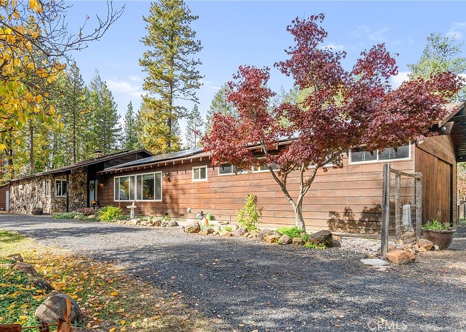 Welcome to a Forest Ranch retreat that beautifully blends comfort, style, and the joy of mountain living. Nestled among the pines on two peaceful acres, this thoughtfully updated 3-bedroom, 2.5-bathroom home offers over 2,200 sq. ft. of inviting living space designed for relaxation, connection, and a slower pace of life, just minutes from central Forest Ranch and a scenic 15-minute drive to Chico. Step inside to a bright and open main living room filled with natural light and serene views of the forested backyard. A wall of windows and French doors creates a seamless indoor-outdoor connection, while the rock accent wall provides a stunning backdrop to the pellet stove, keeping the home warm and cozy through the cooler seasons. Just off the kitchen sits a second living/dining area with a warm, rustic feel. Here, a second pellet stove set against a rock hearth anchors the space, while large windows frame views of the front yard and mature fruit trees, letting sunlight pour in throughout the day. French doors offer additional backyard access, enhancing the home’s natural flow. The beautifully remodeled kitchen is sure to impress, featuring elevated quartz countertops, a Thermador induction cooktop, a KitchenAid convection oven and dishwasher, stylish cabinetry with modern hardware, bar-top seating, and a walk-in pantry. Whether cooking a quiet dinner at home or hosting friends, this kitchen was designed with both function and style in mind. Off this space, you’ll also find a convenient half bath and a laundry/mud room with a utility sink, storage, and exterior access. Down the hall are two comfortable, spacious guest bedrooms and a full guest bath, while the primary suite provides a peaceful retreat with a large closet and an en-suite bathroom. You’ll also find large closets throughout the home, providing excellent storage for everyday living. Outside, the property offers room to live the mountain lifestyle you’ve dreamed of, complete with fruit trees, a chicken coop, RV parking, plus a shed and shop ideal for storage, hobbies, or projects. The 34-panel Solar System supports this efficient, all-electric home. Whether you’re seeking a full-time residence or a weekend escape, 16298 Forest Ranch Way delivers the calm of ridge living with the conveniences you need, wrapped in warmth, charm, and thoughtful upgrades.