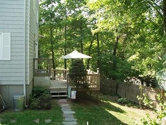 3 Bedroom Townhouse located on friendly cul-de-sac in Natick near Wellesley line. Five rooms including 3 bedrooms, living room, fully-equipped kitchen open to dining area, one full and one half baths. Sun & Shade Deck with partially fenced in private yard. Outdoor storage shed on property for exclusive use of Tenants. Laundry on LL (Newer Washer & Dryer included 'as is'). Convenient location between Wellesley College & Natick Ctr. Walking distance to train in downtown Natick (only about 1 mile). Off-street parking for up to 2 cars. Landlord takes care of snow removal & grounds. Tenant responsible for all utilities and removal of snow from private walkways and cars. Hardwood floors in most rooms. Exterior repainted in 2016. Pets subject to Landlord approval. Smoking not permitted inside unit.