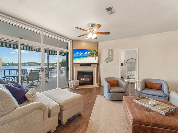 Experience lake life at its best in this 3-bedroom, 3-bathroom condo at the sought after Evergreen complex on the 18MM! The three nicely appointed bedrooms include one with a king bed, the second with a twin over twin bunk bed and another with a full size bed. The open floorplan is ideal for entertaining with a bright kitchen featuring stainless steel appliances and brand-new cookware. Unwind in the spacious lakeside primary suite with deck access, a walk-in shower, and double vanity. Relax on the screened-in covered deck with peaceful sunrise views or cozy up by the gas fireplace. Enjoy amenities including a lakeview pool and a pickleball court. Located in Sunrise Beach about 3 miles from the community bridge by land and the 18 mile marker by water. Backwater Jacks is straight across the main channel, Dog Days is located 1 mile up at the 19 mile marker, Red Head Yacht Club and Shorty Pants are located at the 21 mile marker. This condo offers a great location to enjoy everything Lake of the Ozarks has to offer. There is no boat slip available and no trailer or boat parking in the complex.