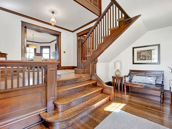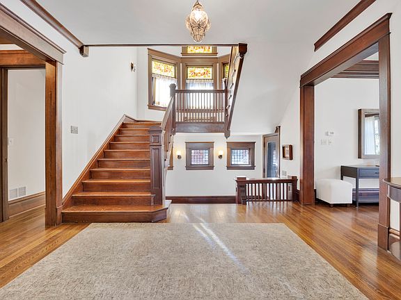 Welcome to a magnificent and timeless treasure, this extraordinary home caters to the needs of a modern family while preserving the charm and character of its rich history. As you enter this historic 5-bedroom home, which has been lovingly restored by its current owners, you'll immediately feel the warmth and attention to detail that has been poured into every inch over the last 17 years of ownership. You will be captivated by the magnificent entry foyer with leaded glass windows, the majestic staircase with original stained glass windows, and the beautifully restored quarter-sawn oak flooring. The spacious living room features a wood-burning fireplace with an original tile surround, beamed ceilings, and impeccable woodwork throughout. The dining room offers original built-ins and wainscoting, adjacent is a butler's pantry making entertaining easy with beautiful and functional cabinetry, a beverage fridge, and an ice maker, plus an added desk space that keeps your day-to-day files organized. As you enter the custom chef's kitchen take note of the Amish cabinetry, newer quartz countertops, subway tile backsplash, Wolf range, and a Sub-Zero refrigerator. Ample seating with an island and eat-in table area. From the kitchen you step down into a beautiful family room with a gas fireplace, this space opens to the deck, a blue stone patio, and a large yard. A highlight of the home is the spacious screened-in porch accessible from both the living and dining rooms, surrounded by mature trees that create a serene sanctuary. Completing the first floor is a spacious mudroom with ample storage featuring custom cabinetry and a slate floor. Adjacent to the mudroom is a well-appointed laundry closet, complete with modern appliances and plenty of storage space for your cleaning and laundry supplies. One of the standout features of the mudroom and laundry area is the direct access to the outdoors and a second staircase leading upstairs for additional ease and privacy. The second floor has four bedrooms and two full baths. The primary bedroom is spacious and overlooks the front yard with plenty of natural light. This sanctuary features an ensuite bathroom and two closets. A second bedroom is equally impressive, offering two closets and a stunning tree view. Bedrooms three and four are separated by a second full bath with penny tile floor, dual vanity, and tub/shower combination. The fully finished third floor offers an office, a fifth bedroom, and an additional full bath, plus a nook that would make a great reading area or an additional office space if needed. Heading to the fully finished basement you will find a stunning full bar with everything you need to entertain. There is a dedicated workout space, a bright and light family room given the English garden windows, a powder room, and plenty of storage. Outdoor entertaining is effortless with a deck, blue stone patio, and large yard with a 2.5 car garage. This one-of-a-kind home is situated in a premier location, steps to town, schools, parks, and all that Riverside has to offer. Don't miss the chance to call this character-filled masterpiece your home. This is a one-of-a-kind home and a once-in-a-lifetime opportunity.
