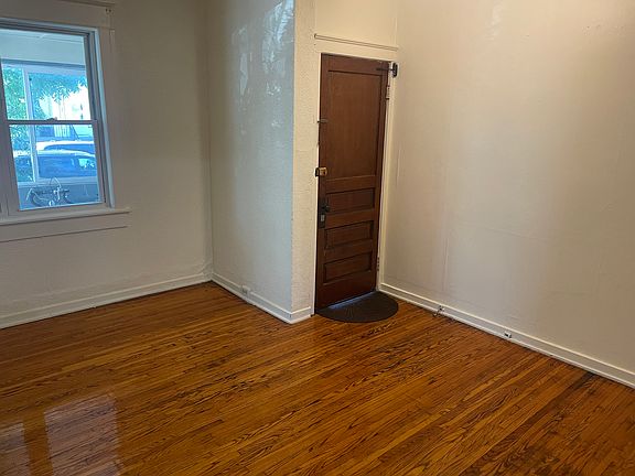 Step into a bright, updated 2-bedroom apartment on the first floor with its own side entrance and direct backyard access. Spanning roughly 600 square feet, this home retains vintage character with original hardwood floors in the living areas and bedrooms, while vinyl flooring makes the kitchen easy to maintain.