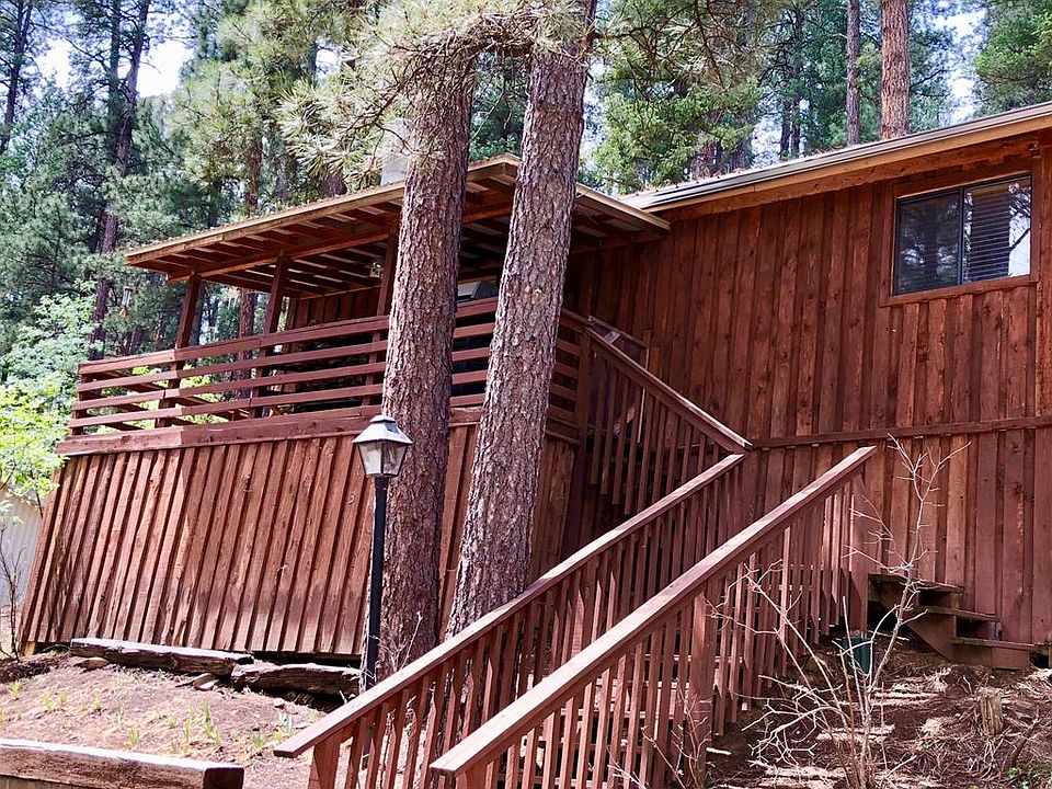 Cute and Cozy Cabin in the woods! New wood floors, earth-tone walls, and a corner wood-burning fireplace invite you to relax in the open living/dining area. Site-built, 2 bedroom/1 bath two minutes away from mid-town Ruidoso shopping and dining. Storage closet, covered front porch, and small fenced off area in the back for outdoor pets surrounded by beautiful ponderosa pines! Nicely furnished for a ready-to-enjoy mountain experience!