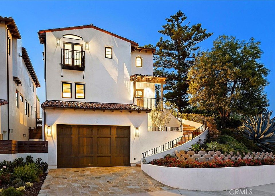 Bursting with character and coastal charm, this Spanish-style smart home in San Clemente offers luxury living in a prime location. Built in 2020, the residence features beautifully terraced landscaping and a dramatic staircase leading to the front entry. Inside, vaulted ceilings, a neutral palette, and French Oak hardwood flooring create a sophisticated ambiance. The spacious living room is anchored by a striking fireplace and custom bar—perfect for entertaining. Glass sliders in the dining area open to an ocean-view terrace ideal for indoor-outdoor living. The chef’s kitchen is equipped with top-tier stainless steel appliances, built-in Sub-Zero refrigerator, white cabinetry, quartz countertops, and a large island with pendant lighting. All bedrooms are generously sized, offering ceiling fans, ample closet space, and a shared bath with a shower/tub combo. The luxurious primary suite provides direct backyard access and a spa-inspired ensuite featuring dual vanities, oversized walk-in shower, freestanding tub, and custom walk-in closet. Outdoor living is elevated by stunning ocean and Catalina Island views. Host guests on the sun-drenched terrace with a built-in Twin Eagles Pellet Grill or relax in the secluded backyard, complete with a covered pergola, dramatic fire pit, and oversized spool with a waterfall feature. Additional highlights include a laundry room near the bedrooms, elevator access on all levels, owned solar panels, EV charger, and an oversized 4-car garage with 12'4" ceilings—ideal for installing a car lift. Located just minutes from downtown San Clemente, popular shops, restaurants, breweries, and beach access, this home blends comfort, style, and convenience in one exceptional package.